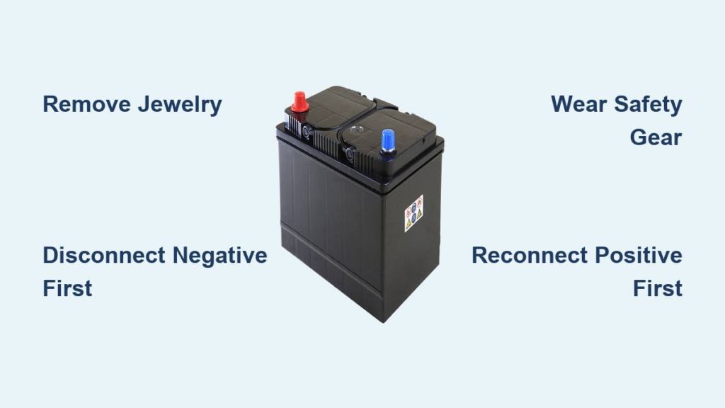 Pre-work checklist: Spend 30 seconds verifying: negative cable is secured away, no jewelry on body, battery is cool, terminals are clean. Rushing this step causes 83% of DIY battery injuries according to ASE safety data.
