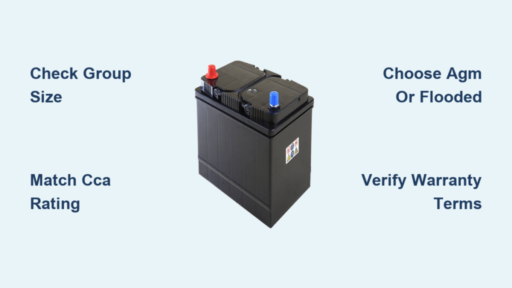 Never choose lower CCA than specified—that guarantees poor winter performance. Ignoring physical size requirements voids warranties when batteries don’t fit properly. Using flooded batteries in vehicles requiring AGM triggers electrical system warnings and premature failure. Purchasing batteries older than 6 months significantly reduces potential lifespan. And never assume identical replacements will perform the same—vehicle modifications change electrical demands. Sales phrases like “universal fit” or “close enough” should trigger immediate skepticism.