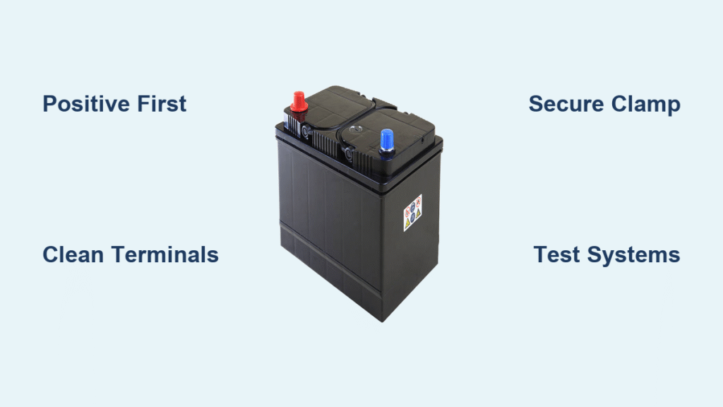 Reversing cables (positive to negative) melts wiring harnesses instantly—replacements cost $800+. Overtightening strips lead posts ($200+ battery replacement). Connecting to painted chassis bolts creates “phantom drain” that kills batteries overnight.