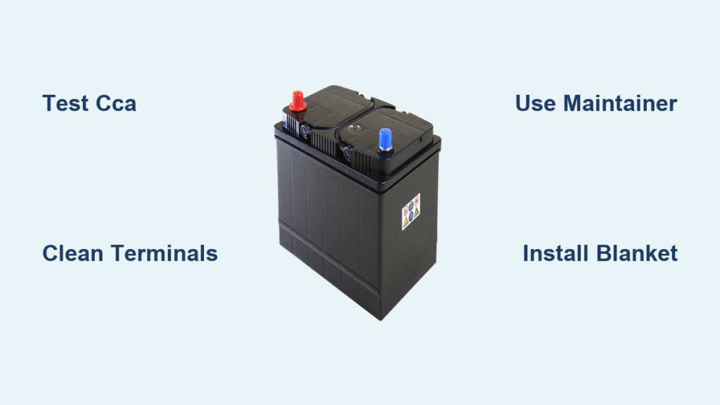 For cars parked outside, a $25 electric blanket keeps batteries 40°F warmer than ambient air. Installation takes 10 minutes: